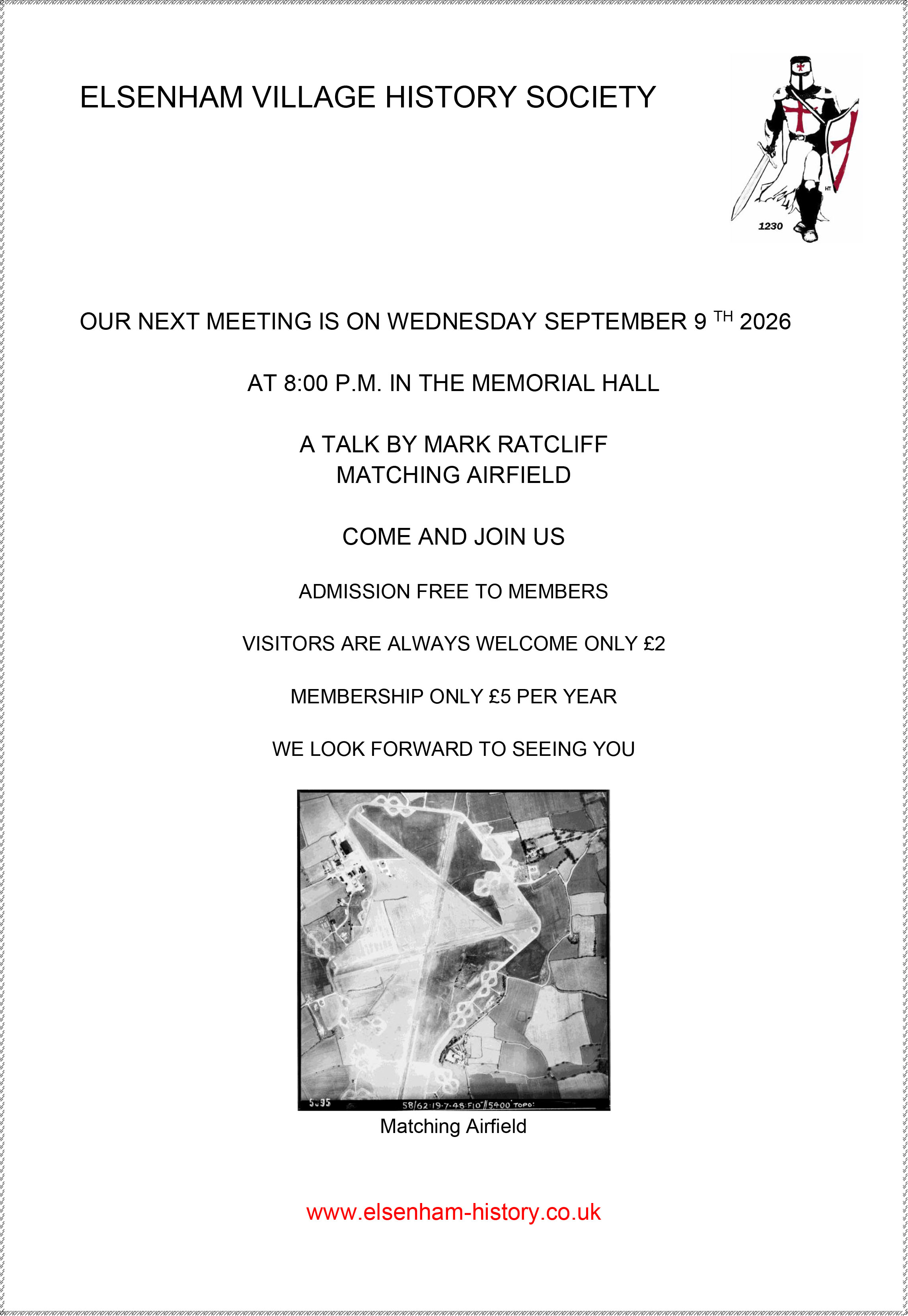 We meet in the Memorial Hall in Elsenham always on a Wednesday evening starting at 8:00 p.m. The latest dates can be found on our home page together with the details of forthcoming speakers and their subjects. We are committed to trying to engage all age groups in the village to find out about what interests them and to encourage them to become part of a fact finding and recording enterprise and to have some fun along the way too.